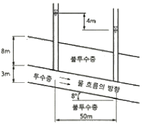 아래 그림의 투수층에서 피에조미터를 꽂은 두 지점 사이의 동수경사(i)는 얼마인가?