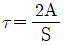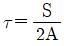흙의 2면 전단시험에서 전단응력을 구하려면 다음 중 어느 식이 적용되어야 하는가? (단, τ=전단응력, A=단면적, S=전단력)