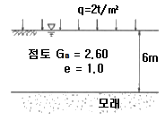 다음 그림에서 점토 중앙 단면에 작용하는 유효압력은?