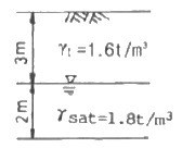 그림과 같은 지반에서 깊이 5m 지점에서의 전단 강도는? (단, 내부마찰각은 35°, 점착력은 0 이다.)