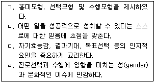 사회인지 진로이론에 관한 설명으로 옳은 것을 모두 고른 것은?