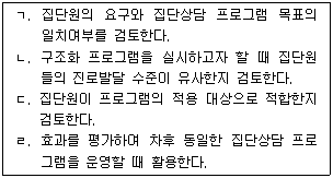 청소년 진로 집단상담을 운영할 때 고려해야 할 것을 모두 고른 것은?