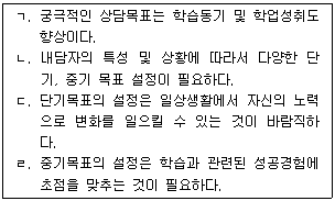 학습 무동기 내담자와의 상담관계에서 상담목표설정에 관한 옳은 것을 모두 고른 것은?
