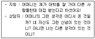 다음의 상담 장면에서 상담자가 시도하고 있는 개입 기법은?
