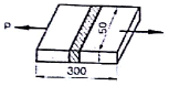 (그림)과 같이 용접부에 인하하중이 60kN을 받고 강재의 인장응력이 200MPa이 작용하고 있을 때 두께는 몇 mm로 설계하여야 하는가? (문제 오류로 정답이 정확하지 않습니다. 정답지를 찾지못하여 임의 정답 가번으로 설정하였습니다. 정답을 아시는 분께서는 오류 신고를 통하여 정답 입력 부탁 드립니다.)