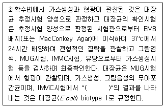 유가공품·식육가공품·알가공품의 대장균 확인시험에서 ( ) 안에 알맞은 내용은?