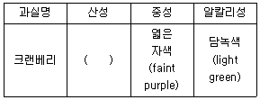 Anthocyanins와 관련된 과실의 색깔 변화표에서 ( )안에 알맞은 것은?