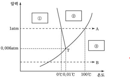 물의 상태도 그래프에서 ①, ②, ③ 각각에 들어갈 물질을 순서대로 나열한 것은?