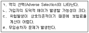 실업보험을 민간 시장에서 제공할 때 발생할 수 있는 문제점을 모두 고른 것은?