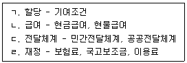 우리나라의 건강보험제도를 할당, 급여, 전달체계, 재정의 영역으로 구분한 것이다. 내용 연결이 옳은 것을 모두 고른 것은?