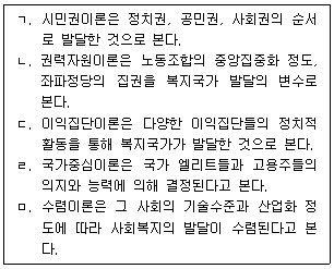사회복지정책의 발달을 설명하는 이론으로 옳은 것을 모두 고른 것은?