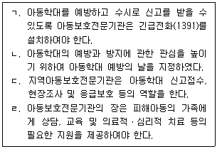 아동학대의 예방 및 방지에 관한 설명으로 옳은 것을 모두 고른 것은?(문제 오류로 가답안 발표시 4번이 답안으로 발표되었으나, 확정답안 발표시 전항 정답 처리 되었습니다. 여기서는 가답안인 4번을 누르면 정답 처리 됩니다.)