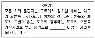 <보기>는 「도로교통법 시행령」에 명시된 정차의 방법에 관한 사항이다. 빈칸에 들어갈 내용으로 가장 옳은 것은?