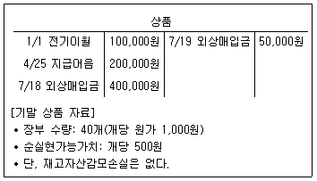 다음 자료를 이용하여 매출원가를 계산하면 얼마인가?