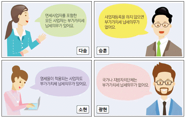 다음 중 부가가치세 납세의무에 대하여 올바르게 설명하고 있는 사람은?