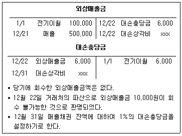 다음은 (주)한공의 총계정원장의 일부와 대손 관련 자료이다. 당기 손익계산서에 계상되는 대손상각비는 얼마인가?