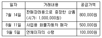 다음 자료를 토대로 (주)한공의 2019년 제2기 예정신고시 부가가치세 과세표준을 계산하면?
