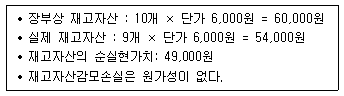 다음 자료를 토대로 (주)한공의 손익계산서상 재고자산감모손실을 계산하면 얼마인가?