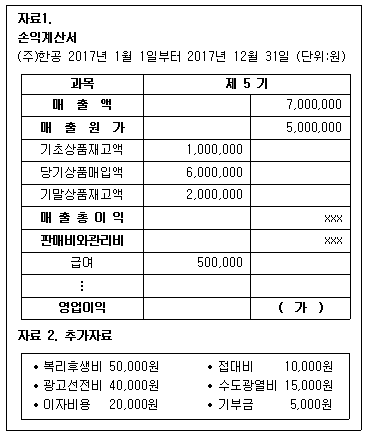 (주)한공의 손익계산서 일부와 추가자료이다. 추가자료를 이용하여 계산한 (가)의 금액으로 옳은 것은?