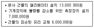 다음은 (주)한공의 유형자산 취득 후 지출 내용이다. 자본적 지출로 처리해야 할 금액의 합계액은 얼마인가?