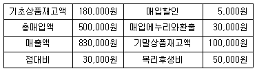 다음은 (주)한공의 회계자료이다. (주)한공의 매출총이익은 얼마인가?