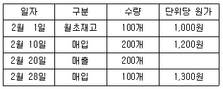 다음은 (주)한공의 2017년 2월 상품수불부이다. 재고자산을 선입선출법으로 평가할 경우 2월말 재고자산은 얼마인가?