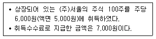 다음은 (주)한공이 보유하고 있는 매도가능증권의 자료이다. 매도가능증권의 취득원가는 얼마인가?