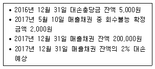 다음은 (주)한공의 매출채권과 대손충당금에 대한 자료이다. 2017년 손익계산서에 계상될 대손상각비는 얼마인가?