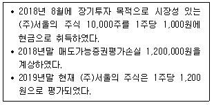 다음은 (주)한공의 매도가능증권 관련 자료이다. 2019년말 결산분개로 옳은 것은?