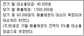 다음 자료를 토대로 (주)한공의 손익계산서에 표시할 대손상각비를 계산하면 얼마인가?