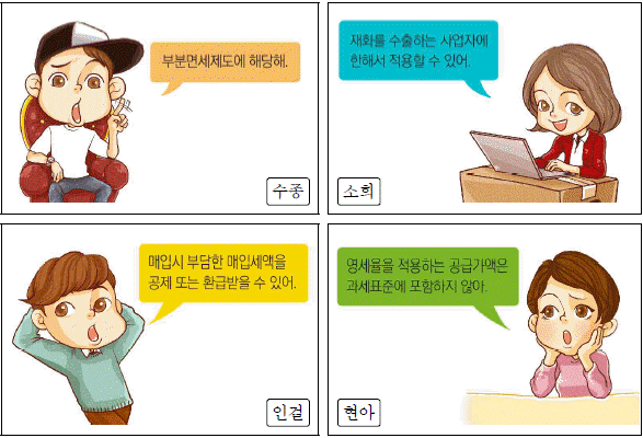 다음 중 부가가치세법상 영세율에 대하여 바르게 설명하고 있는 사람은?