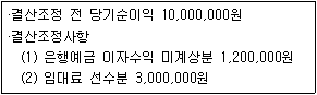 다음 자료를 토대로 결산조정 후 당기순이익을 계산하면 얼마인가?