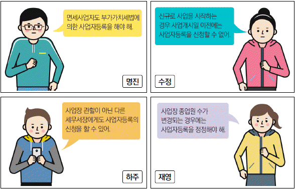 다음 중 부가가치세법상 사업자등록에 대하여 바르게 설명하고 있는 사람은?
