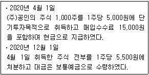 다음은 (주)한공의 단기매매증권 처분과 관련된 자료이다. 2020년 12월 1일 단기매매증권처분손익은 얼마인가?
