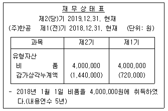 다음은 (주)한공의 재무상태표 일부와 비품 취득 관련 자료이다. 이에 대한 설명으로 옳은 것은?