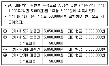 다음은 (주)한공의 주식 취득 관련 자료이다. 취득 시 분개로 옪은 것은?