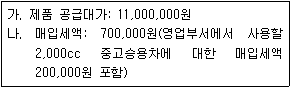 다음 자료를 토대로 제조업을 영위하는 일반과세자 (주)한공의 2020년 제1기 부가가치세 예정신고 시 부가가치세 납부세액을 계산하면 얼마인가? 단, 세금계산서는 적법하게 수수하였고 주어진 자료 외에는 고려하지 않는다.