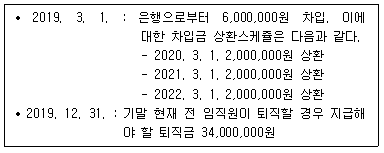 다음 자료를 토대로 2019년 12월 31일 재무상태표에 표시될 비유동부채 금액을 계산하면 얼마인가?