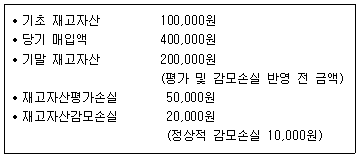 다음 자료를 이용하여 매출원가를 계산하면 얼마인가?