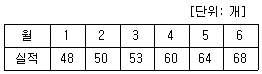 다음 표를 참조하여 5개월 단순이동평균법으로 7월의 수요를 예측하면 몇 개인가?