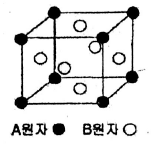[그림]과 같이 면심입방격자(FCC)로 된 A 원자와 B원자의 규칙격자 원자배열에서 A와 B의 조성을 나타내는 것은?