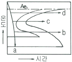 다음 TTT 등온 변태도에서 미세펄라이트 변태구간은?