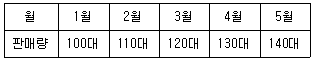 다음 표는 어느 자동차 영업소의 월별 판매실적을 나타낸 것이다. 5개월 단순이동 평균법으로 6월의 수요를 예측하면 몇 대인가?