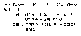 다음 내용은 설비보전조직에 대한 설명이다. 어떤 조직의 형태에 대한 설명인가?