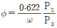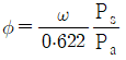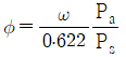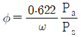 습공기의 상대습도(ø)와 절대습도(ω)와의 관계에 대한 계산식으로 옳은 것은? (단, Pa는 건공기 분압, Ps는 습공기와 같은 온도의 포화수증기 압력이다.)