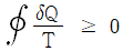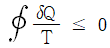 계가 비가역 사이클을 이룰 때 클라우지우스(Clausius)의 적분을 옳게 나타낸 것은? (단, T는 온도, Q는 열량이다.)