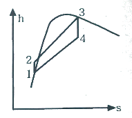 그림과 같은 Rankine 사이클의 열효율은 약 얼마인가? (단, h는 엔탈피, s는 엔트로피를 나타내며, h1=191.8kJ/kg, h2=193.8kJ/kg, h3=2799.5kJ/kg, h4=2007.5kJ/kg이다.)