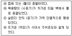 다음 4가지 경우에서 ( )안의 물질이 보유한 엔트로피가 증가한 경우는?