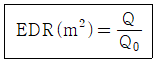 방열기에서 상당방열면적(EDR)은 아래의 식으로 나타낸다. 이중 Q0 는 무엇을 뜻하는 가? (단, 사용단위로 Q는 W, Q0는 W/m2이다.)