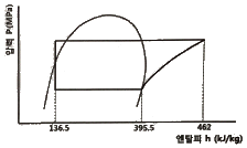 그림과 같은 냉동 사이클로 작동하는 압축기가 있다. 이 압축기의 체적효율이 0.65, 압축효율이 0.8, 기계효율이 0.9라고 한다면 실제 성적계수는?